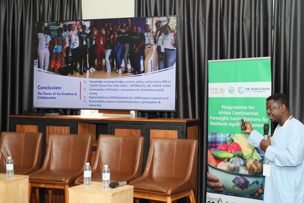 Dr Agumya highlighted CAADP-XP4’s role in strengthening agricultural research for development through enhanced institutional collaboration and the establishment of the African Agricultural Research, Innovation and Education Institutions (AARIEIs). He cautioned, however, that knowledge systems alone are insufficient to drive transformation at scale, emphasising the need to work closely with farmers, academia, extension services, education institutions, and the private sector to translate research into practical solutions. He commended the AUC for convening the meeting and urged XP4 partners to align more deliberately with the FSRP, while thanking AFAAS and ASARECA for hosting.