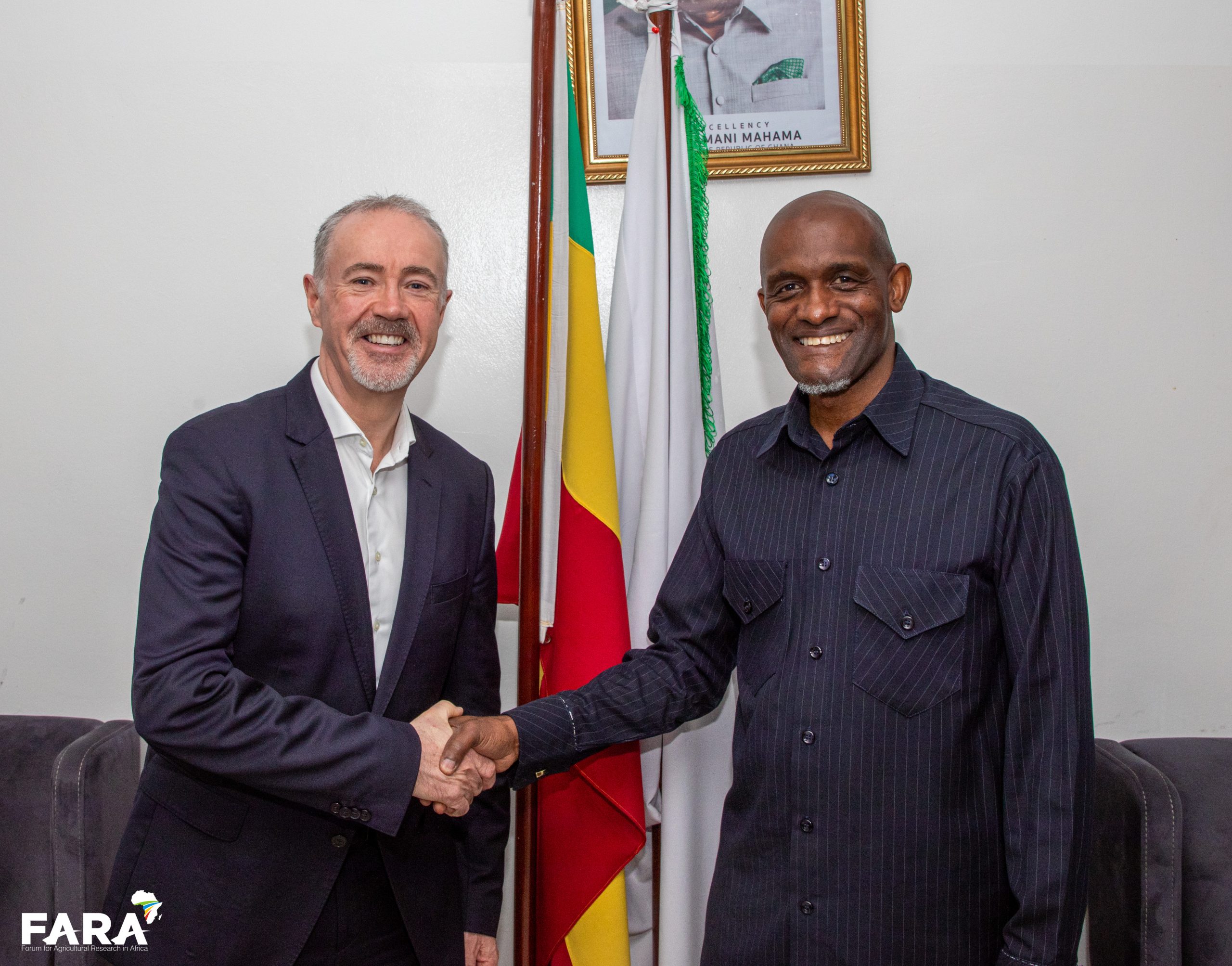 The Forum for Agricultural Research in Africa (FARA) and Farrelly & Mitchell today held a high-level strategic meeting at the FARA Headquarters in Accra, Ghana, to advance discussions on a forthcoming Memorandum of Understanding (MoU) aimed at jointly mobilising resources to technically advance projects that address high-priority challenges and opportunities with a special focus on the Common African Agro-Parks (CAAPs) Programme.
