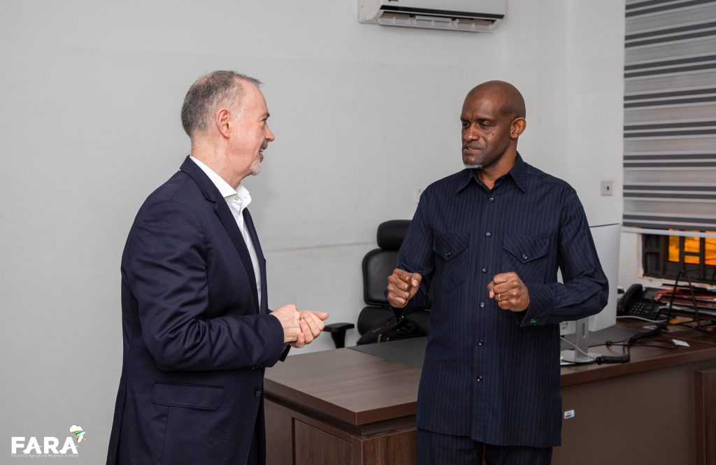 The meeting brought together Dr. Aggrey Agumya, Executive Director of FARA, Mr. Malachy Mitchell, Co-founder and Managing Director of Farrelly & Mitchell, and Mr. Stephen Awuah the Regional Director of Farrelly & Mitchell in West Africa. They exchanged views on the strategic, technical, and financial contours of the proposed cooperation.